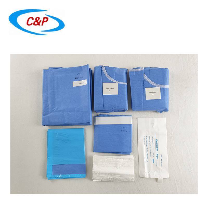 | Nội dung | 1pc Drap chữ U 195x315cm, 1pc Drap kiểu Turban 70x100cm, 1pc Khăn trải bàn sau 140x230cm, 2pcs Áo choàng phẫu thuật (cấp độ 3, size L), 2pcs Khăn lau tay 40x50cm, 1pc Khăn trải bàn Mayo 58x137cm, 1pc Túi chỉ khâu |